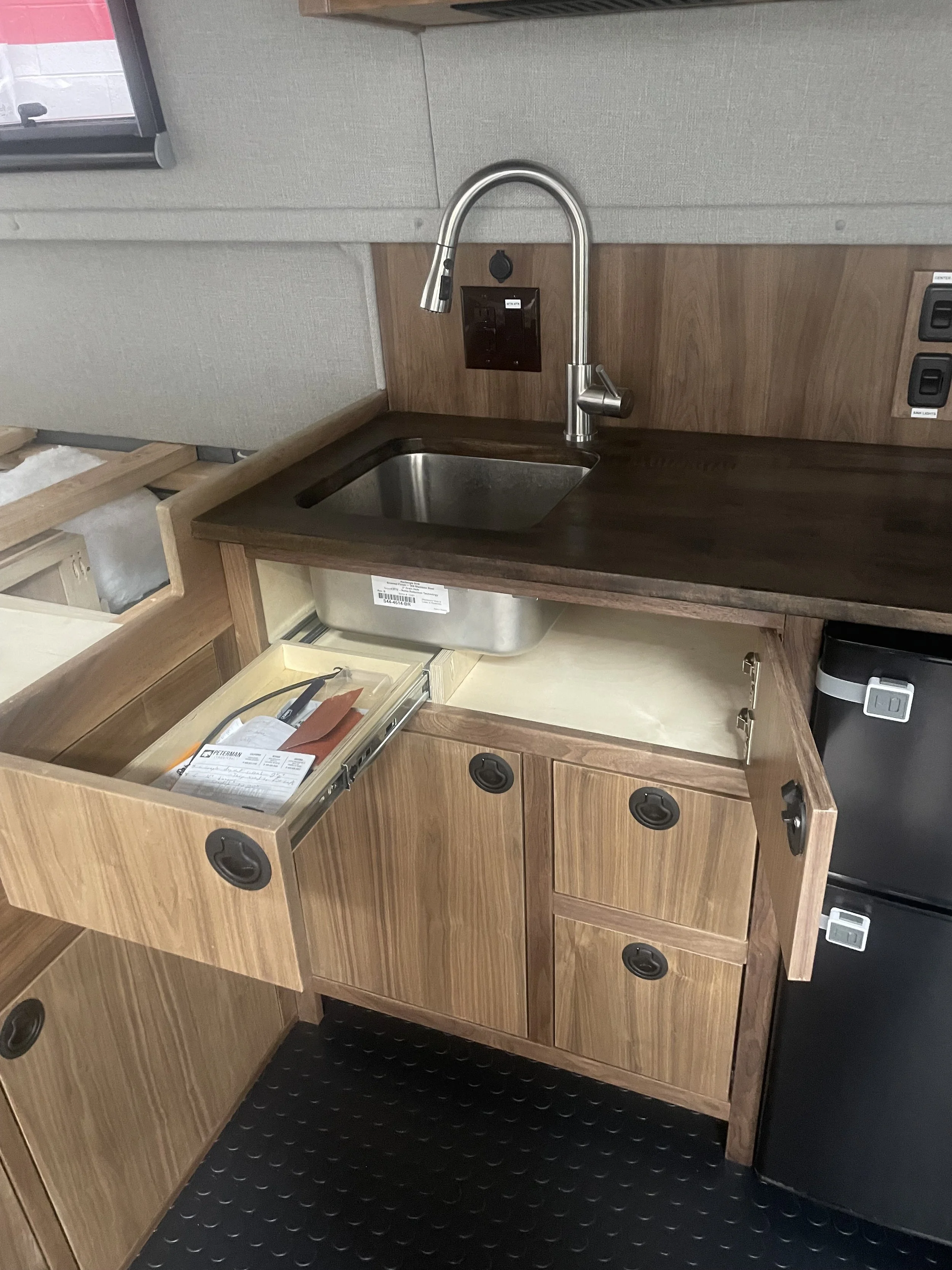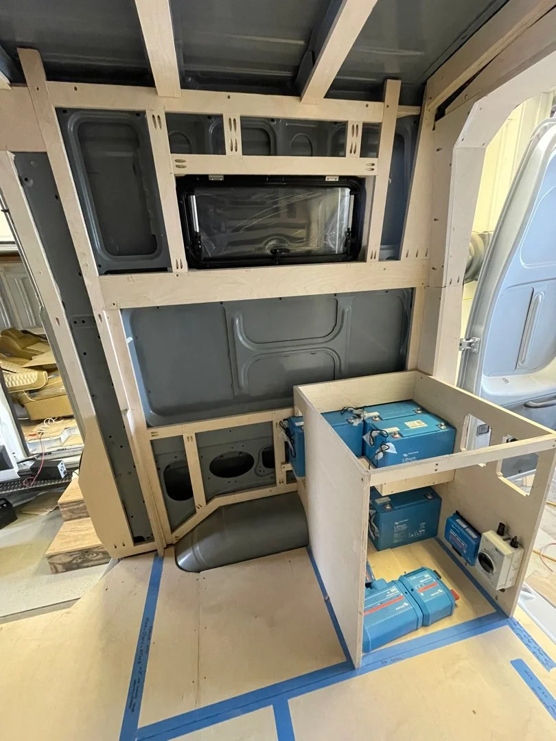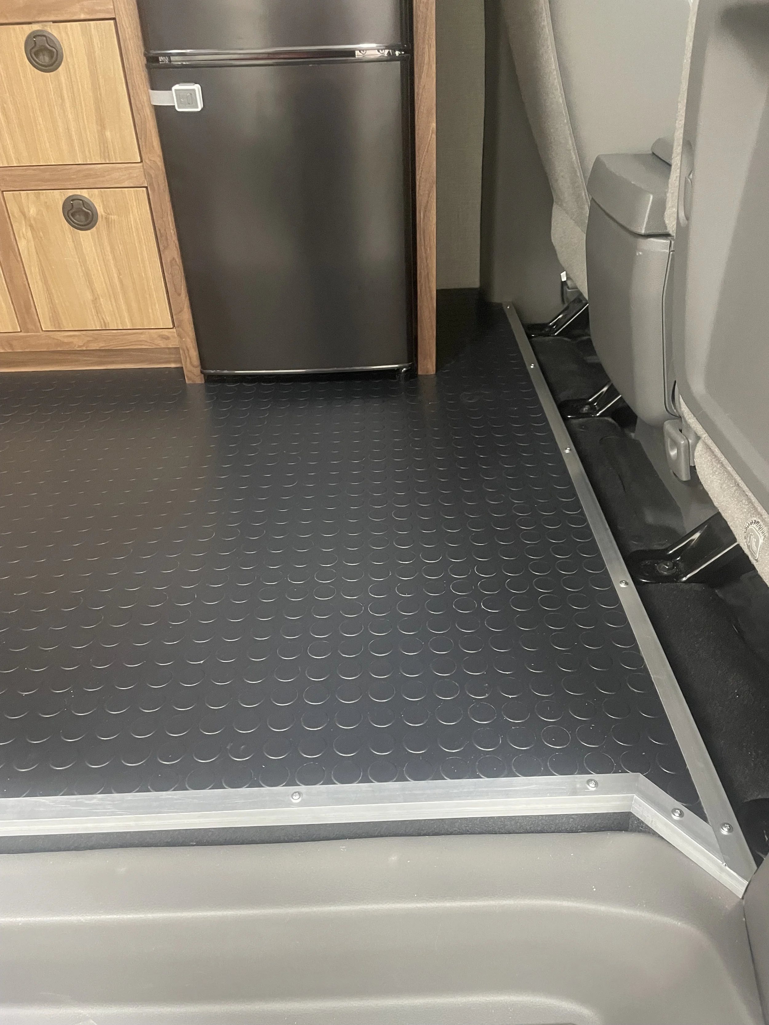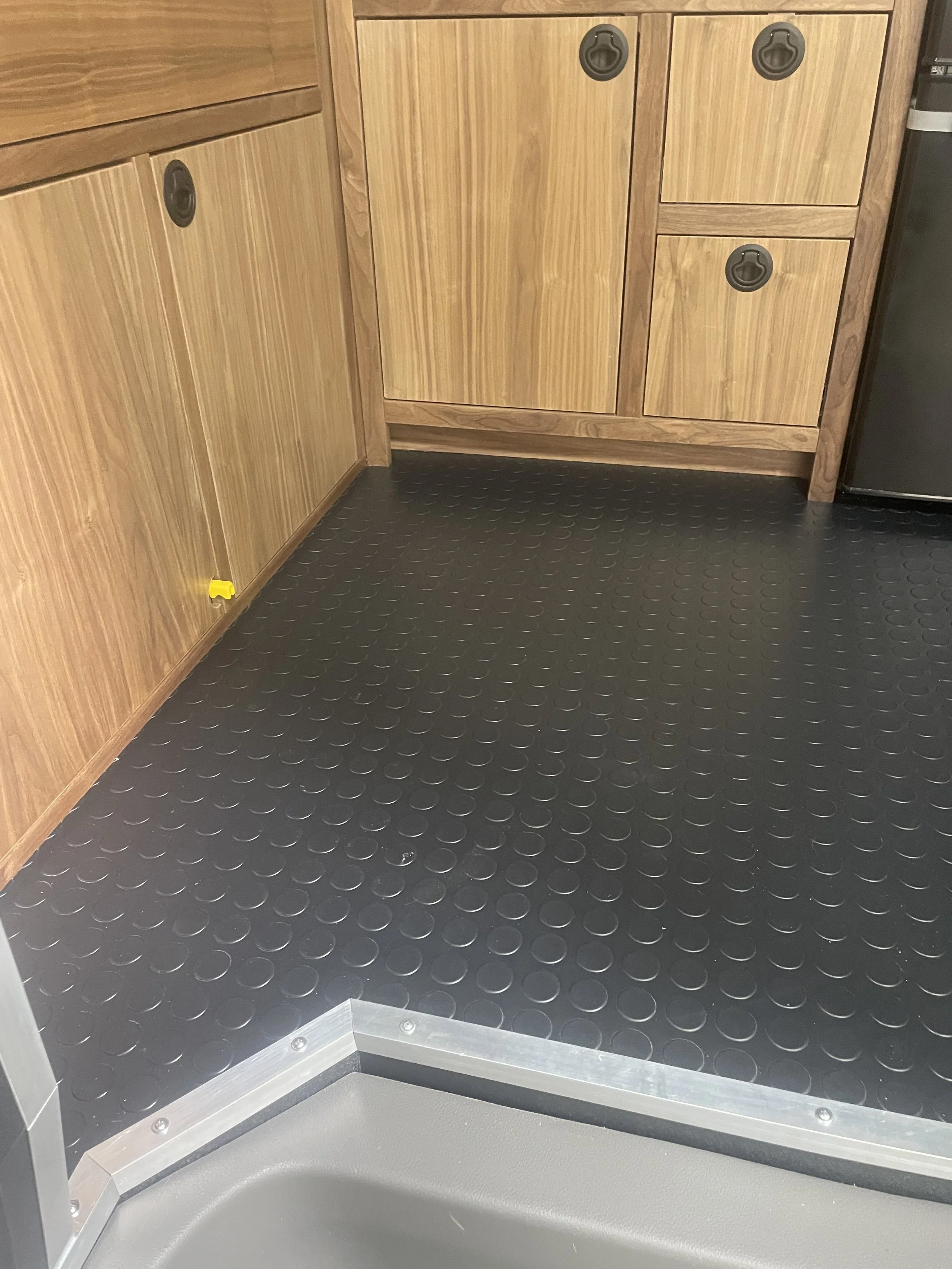 Insulation & Framing – Full insulation with foam board in walls and subfloor (1.5"). Framing to accommodate cabinetry and smooth wall paneling in dove gray.